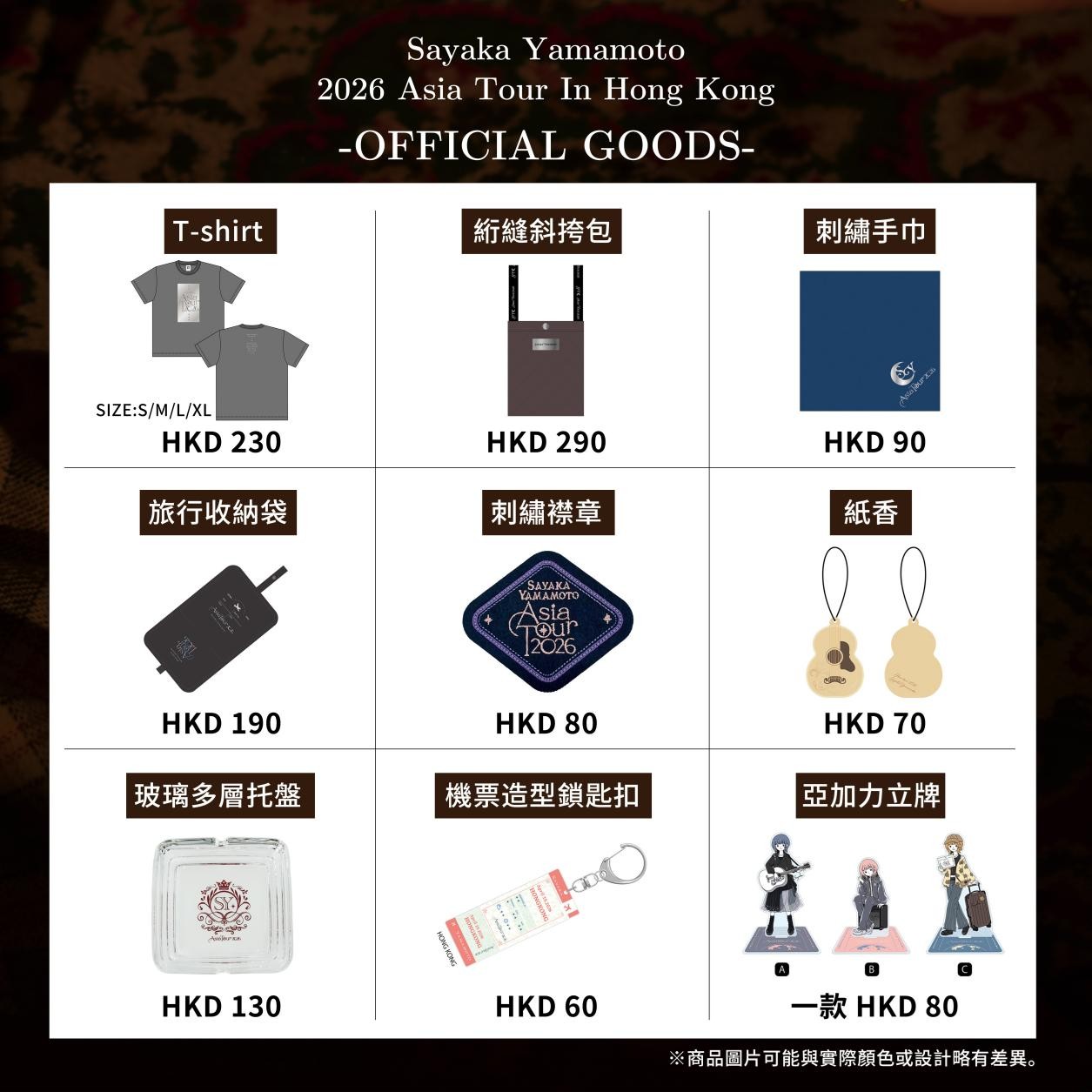 将于2026年4月19日(周日)举行的『Sayaka Yamamoto Asia Tour 2026』香港公演,现场发售的官方周边商品阵容已经决定!